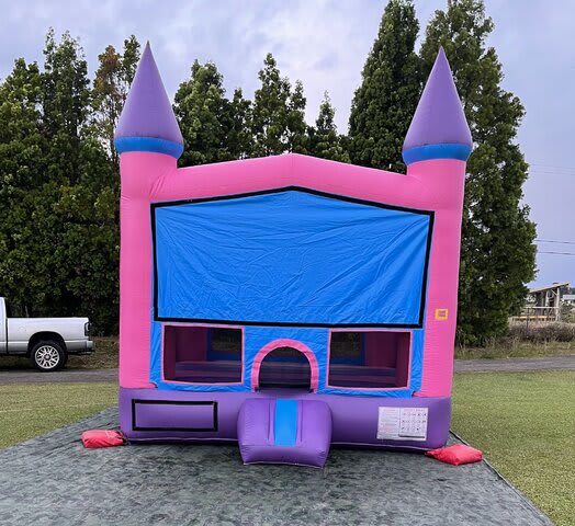 Make princess’s dreams come true in this pink, purple, and blue inflatable Castle Jumper! A must-have for any princess’s party, this commercial grade bounce house will be the pinnacle of fun.